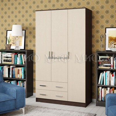 Шкаф 3-х ств. Габариты: (ШхВхГ): 1200х2016х520 мм. Дуб беленый/венге, Ясень шимо светлый/Ясень шимо темный