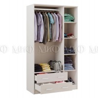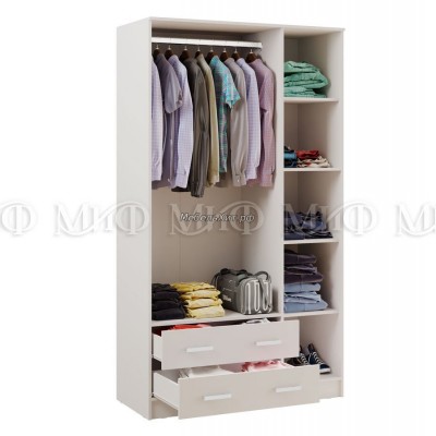 Распашной шкаф с выдвижными ящиками. Выполнен в обычном дизайне. Имеет два отделения: одно предназначено для верхней одежды, другое представляет собой стеллаж для постельного белья и прочих вещей.