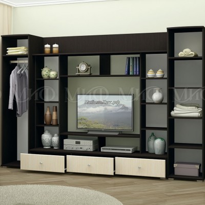 Гостиная Орхидея , Габариты (ШхВхГ): 3000х2050х540 мм, Ниша под ТВ (ШхВ): 1200х870 , Цвет: Белый матовый/венге
