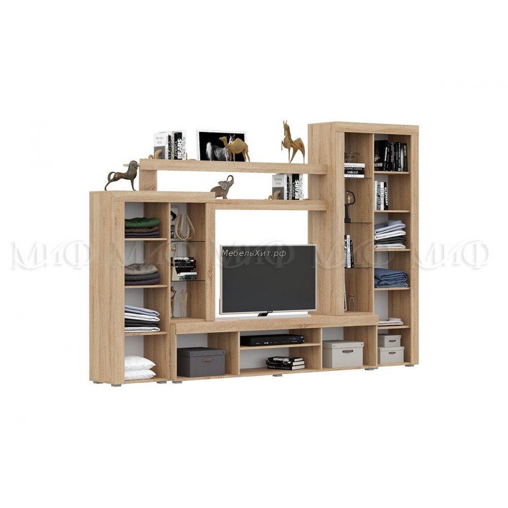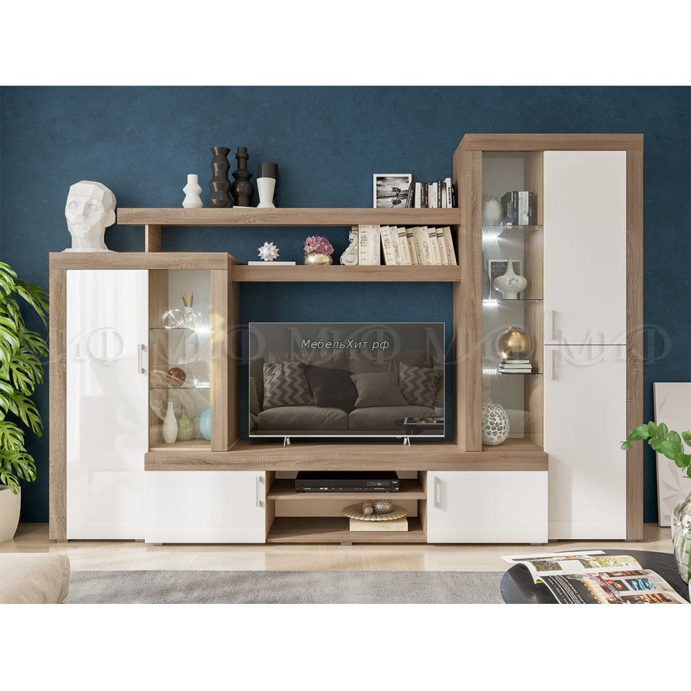 Гостиная Стас (Белый глянец/дуб сонома, дуб сонома)