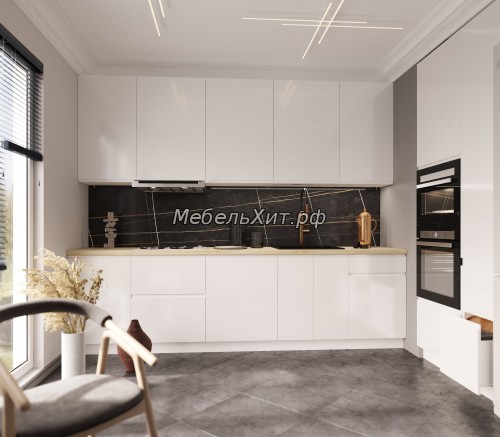 Цвет корпуса: Белый; Цвет фасада: Бланко; Тип мебели: Кухня; Серия: Маори; Глубина: 600; Высота: 2336; Длина: 2800; Материал фасада: МДФ; Материал корпуса: ЛДСП; Тип кухни: Прямая
